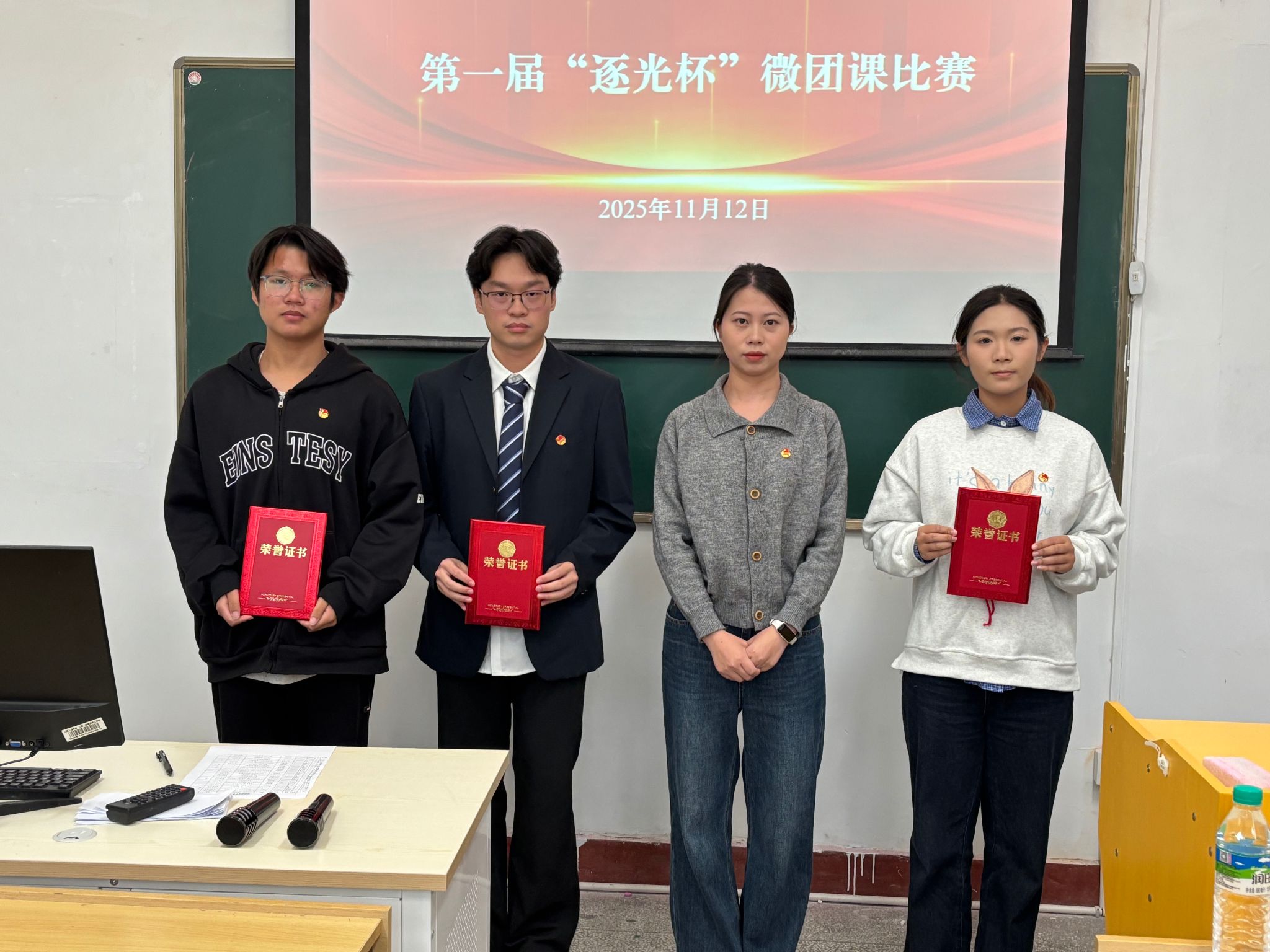 此次“逐光杯”微团课比赛为青年学子搭建了思想交流与实践展示的平台。校团委勉励获奖同学珍惜荣誉、再接再厉,发挥示范引领作用;同时号召全校青年以获奖选手为榜样,主动学习党的创新理论,积极参与团课实践,在青春赛道上奋力奔跑,为学校高质量发展贡献青春力量。