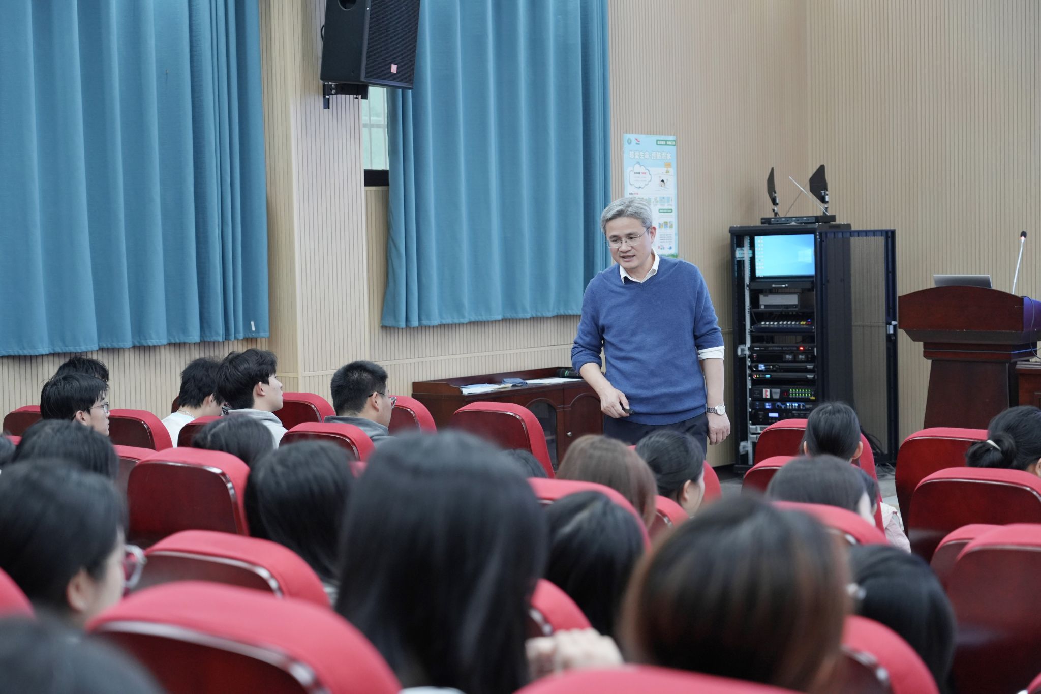 30日下午,花严红来到莲塘校区,以《决战“十四五” 奋发向前行》为题,为同学们讲授“学习贯彻党的二十届四中全会精神”专题思政课。他紧紧围绕习近平总书记在全会上的重要讲话和《中共中央关于制定国民经济和社会发展第十五个五年规划的建议》,通过详实的数据和生动的案例,从“十四五”时期国家发生的深刻变化和发展成就,“十五五”时期经济社会发展的指导思想、重大原则、主要目标、战略任务和重大举措等方面,对党的二十届四中全会精神进行了全面解读,同时结合学校推动高质量发展目标任务,勉励同学们坚守初心、涵养品格,科学规划、躬身实践,全面提升综合素质和技术技能,努力成长为有理想、敢担当、能吃苦、肯奋斗的新时代好青年。